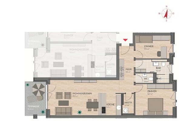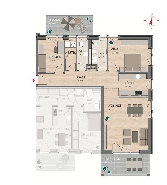 Die in den Grundrissen dargestellte Möblierung ist beispielhaft und nicht enthalten.