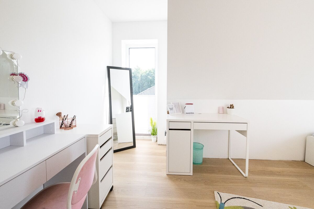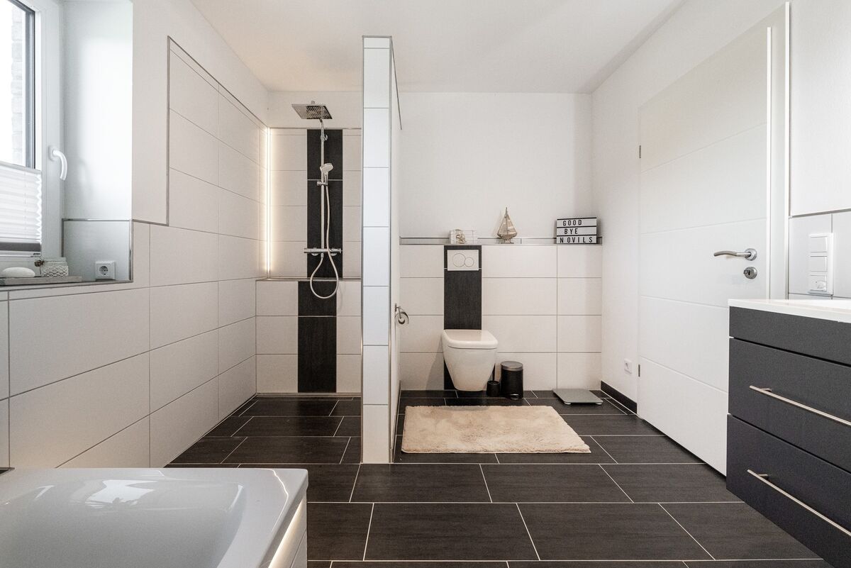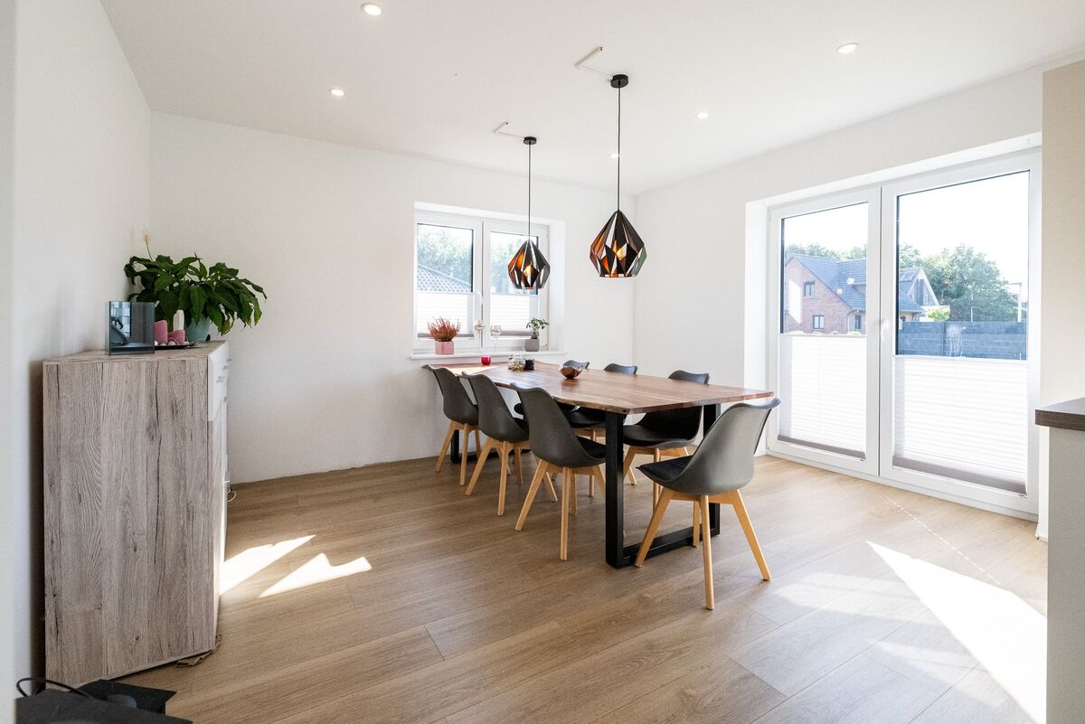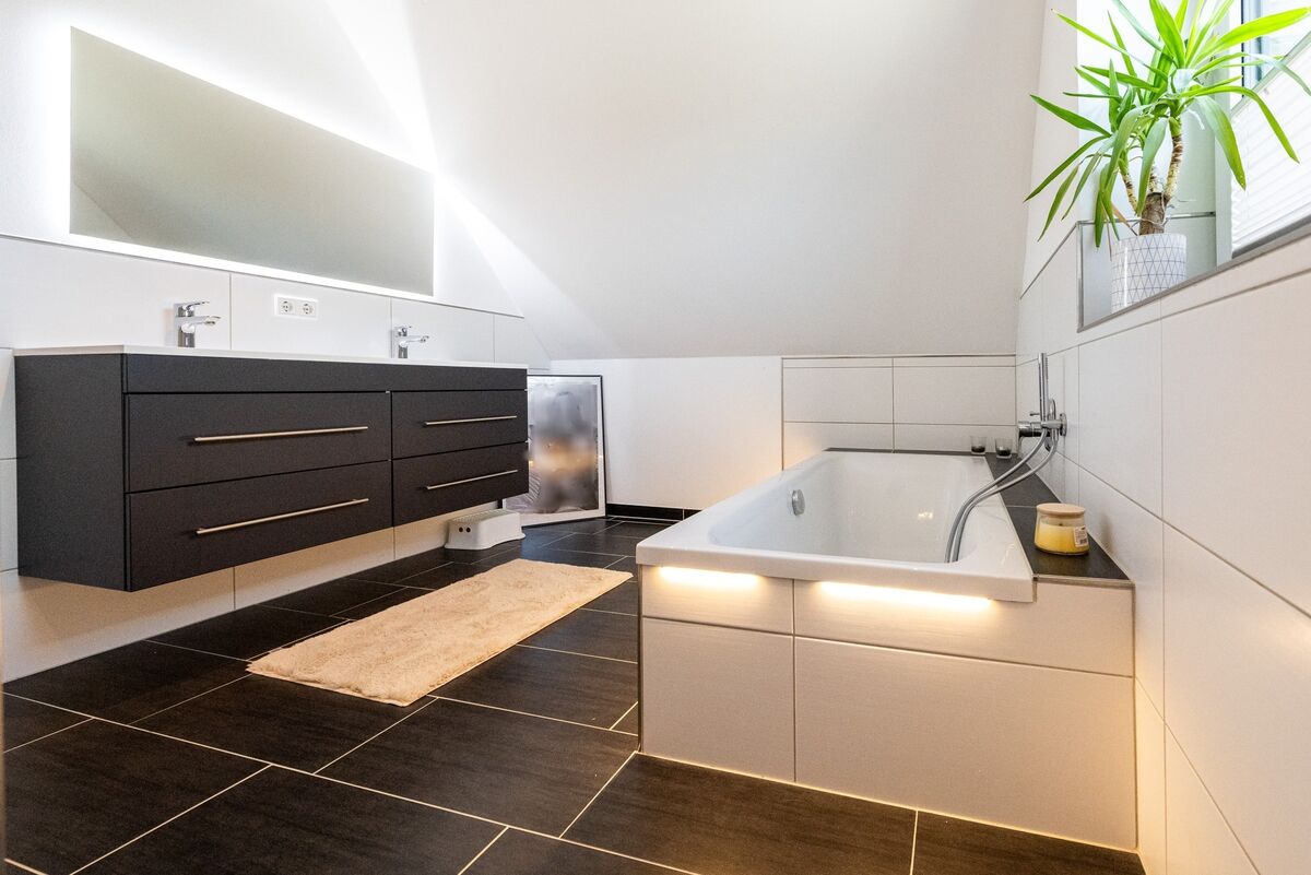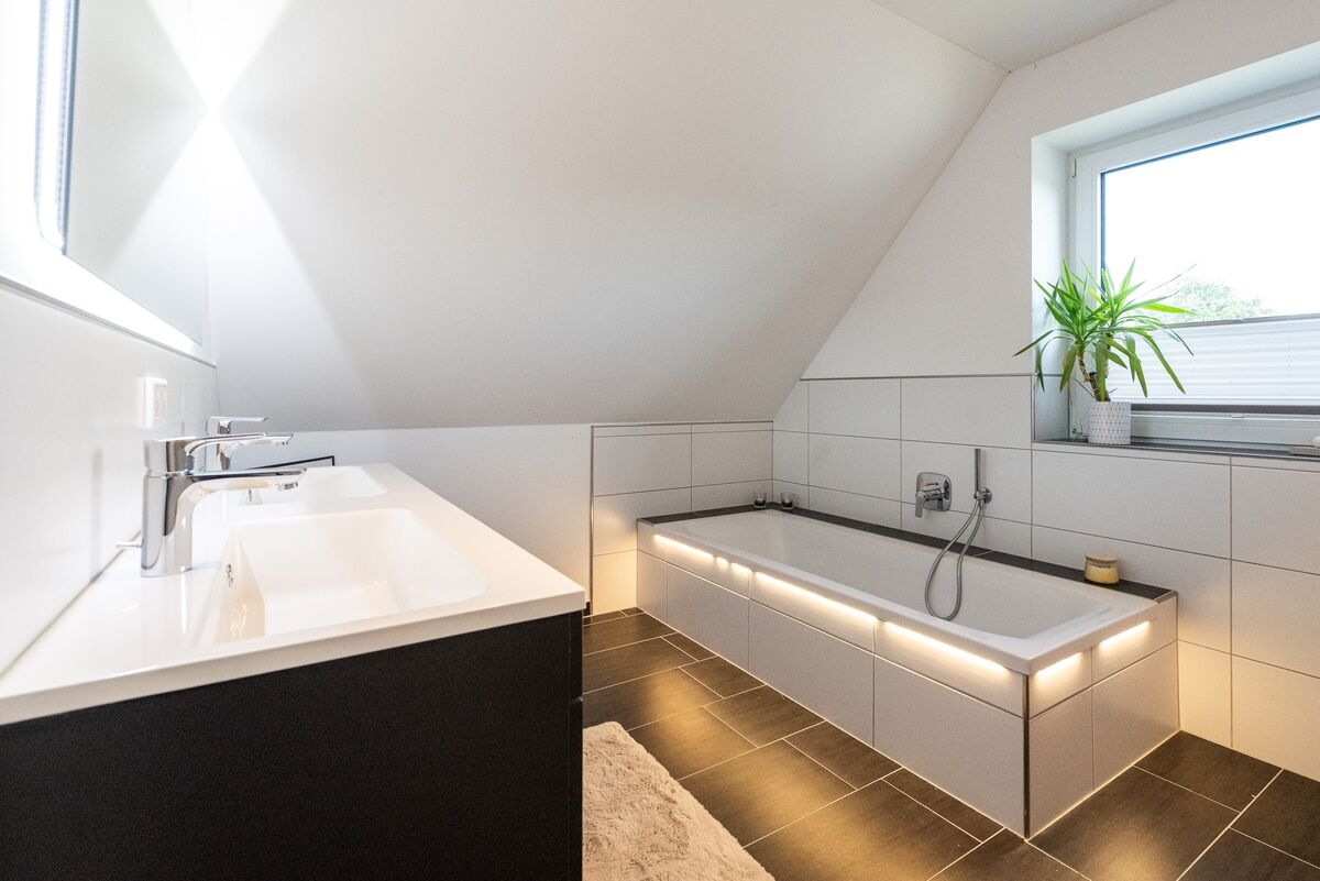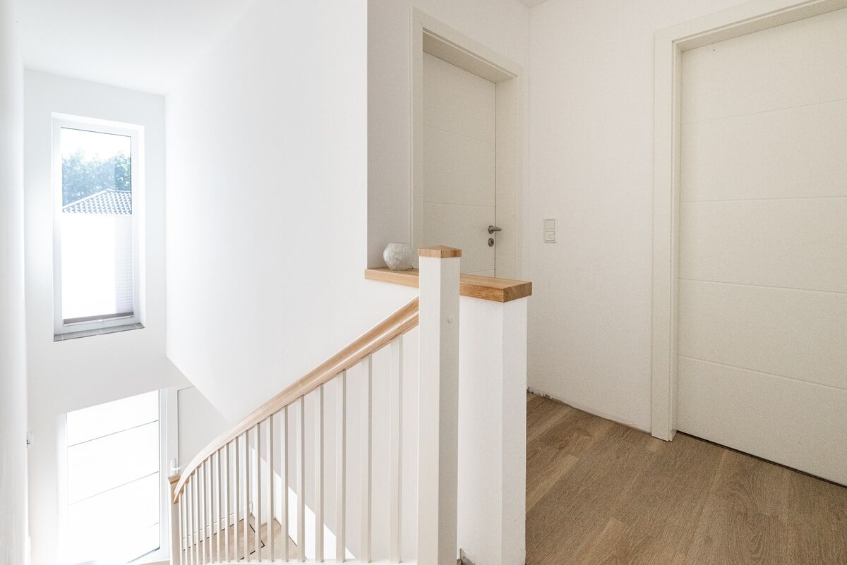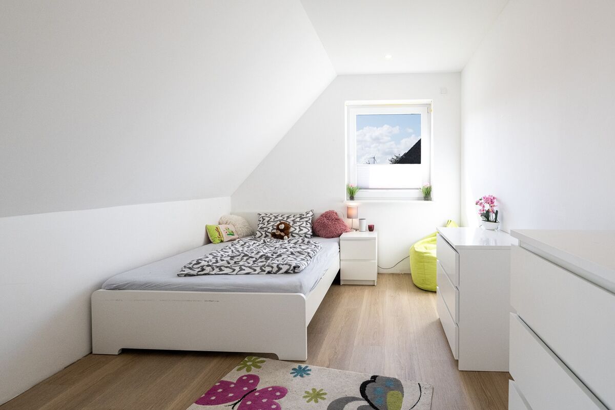 Die Ausstattung umfasst u.a. eine Einbauküche mit Inselmodul, Fußbodenheizung im gesamten Haus sowie teilweise elektrische Rollläden (in den Schlafräumen im Dachgeschoss).