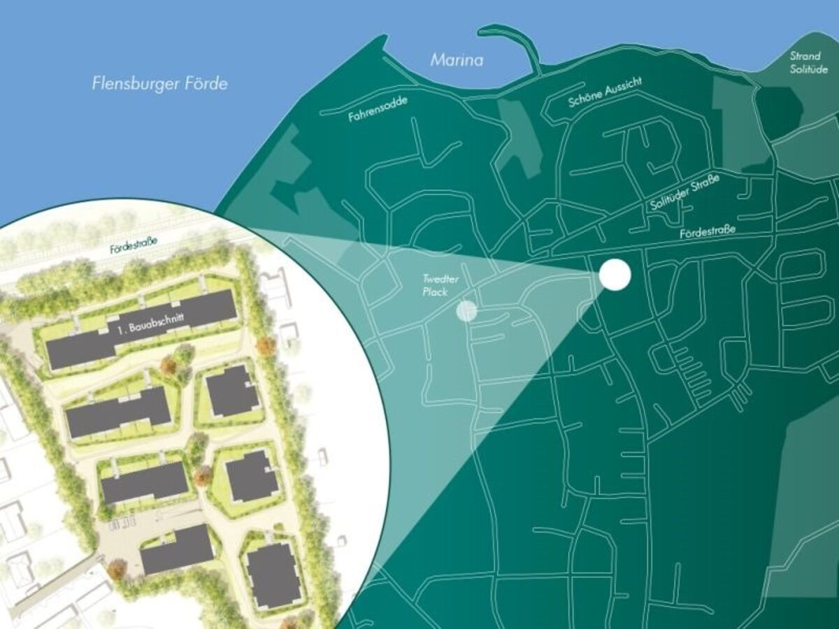 Die Wohnung befindet sich im Stadtteil Mürwik im Ostteil von Flensburg. Die moderne