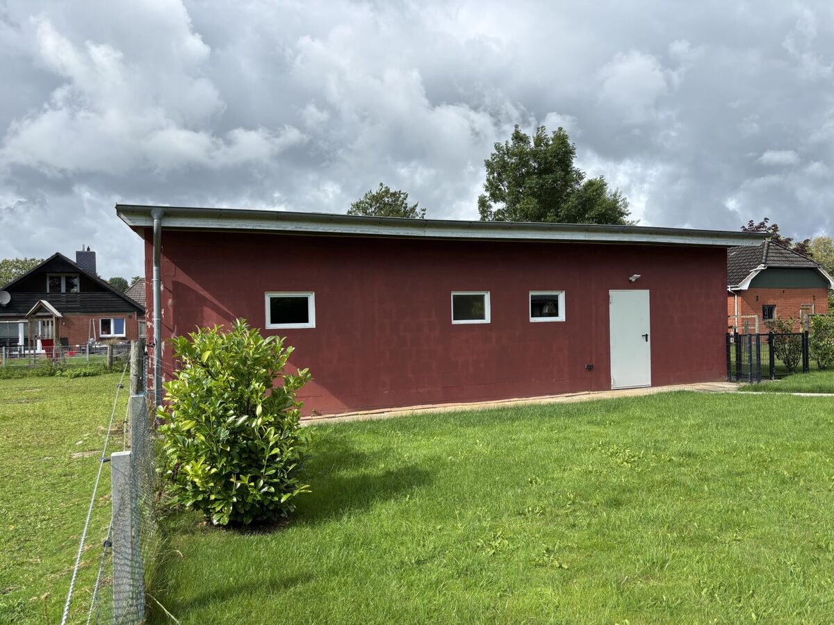 Ein weiteres und besonderes Highlight ist der im Jahr 2010 errichtete Pferdestall in Größe von ca. 12 x 8 Metern, der an die eigene kleine Hauskoppel grenzt. Ursprünglich als Stall mit viel Boxen konzipiert, ist der Innenraum heute komplett gepflastert und wird als großzügige Garage genutzt. Eine Umnutzung ist problemlos möglich und eröffnet vielfältige Nutzungsmöglichkeiten. Durch die abgegrenzte, eingezäunte Grünfläche bietet sich auch heute noch eine Hobby-Tierhaltung an!