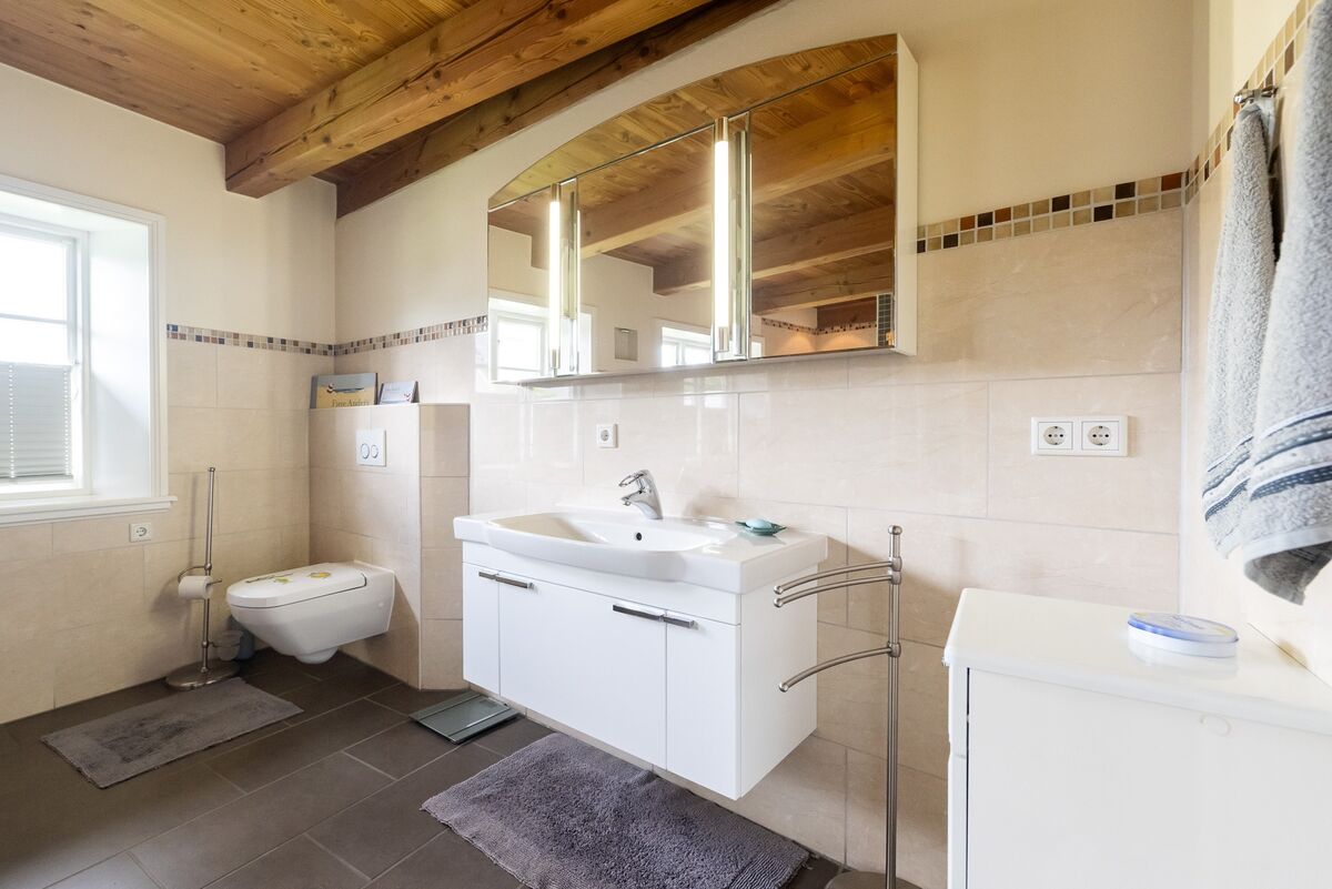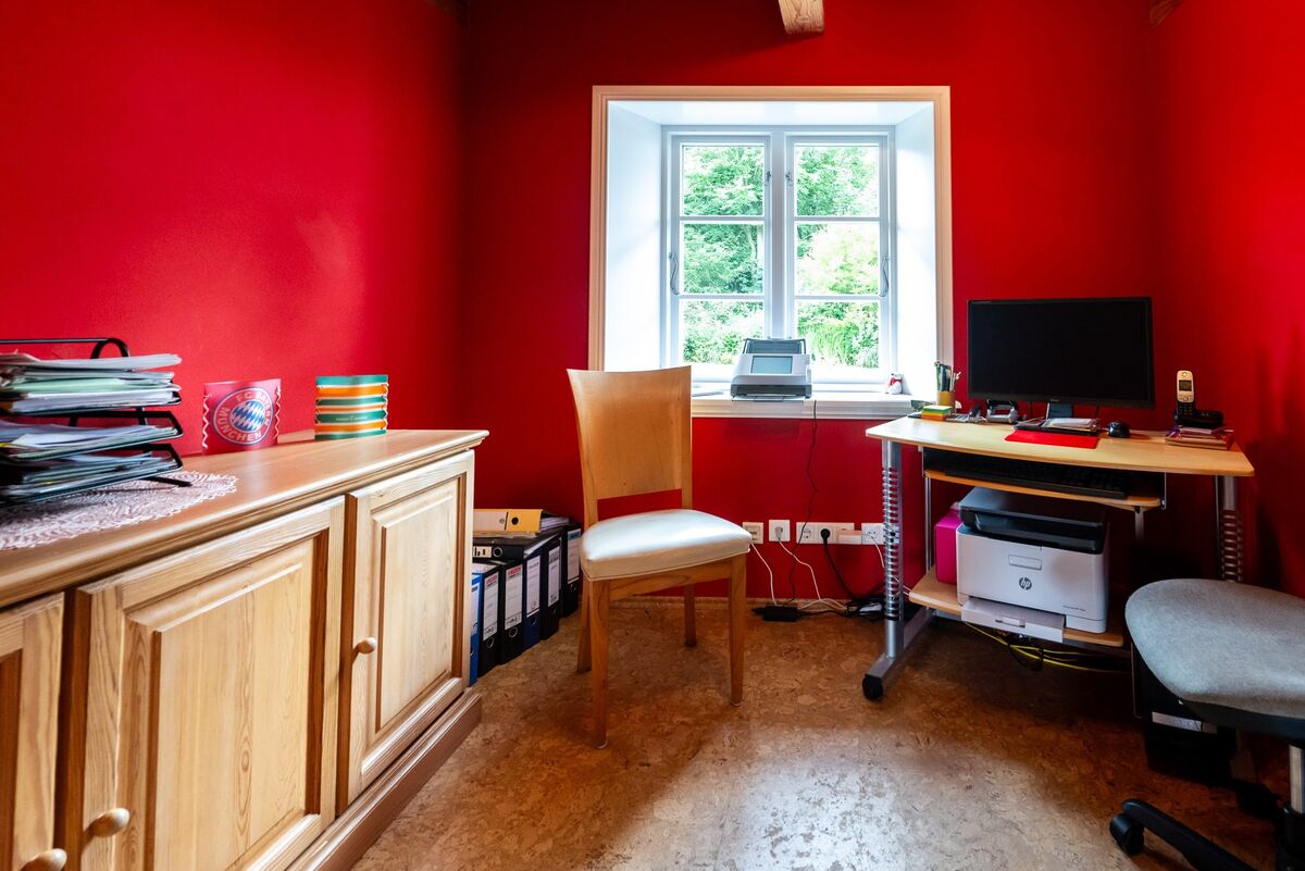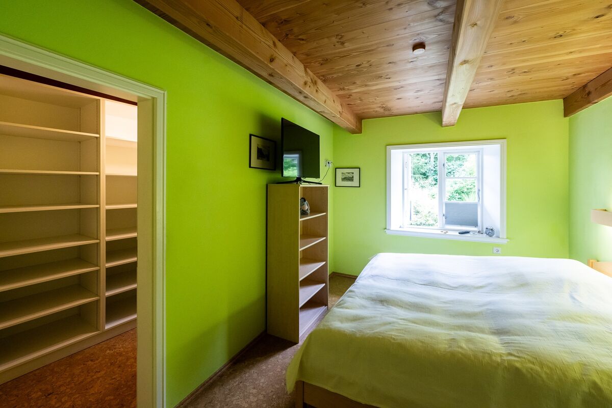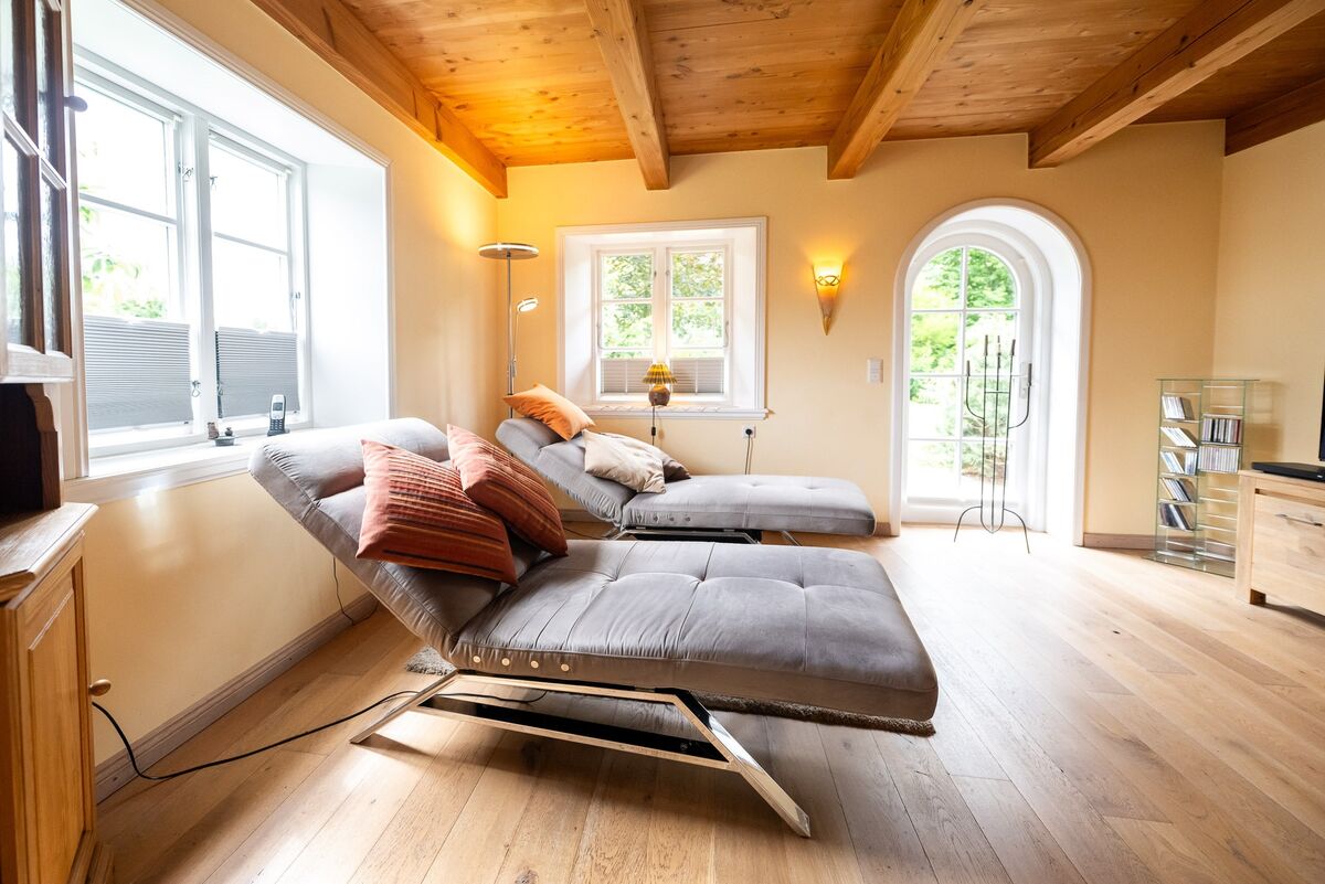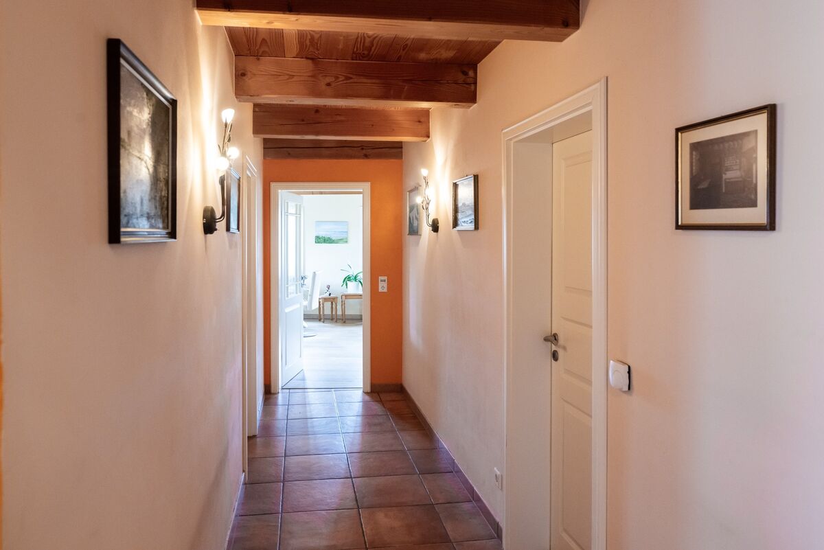 Das angenehme Wohnklima wird insbesondere durch die offene Balkenlage sowie die zwei wertvollen Grundöfen geprägt.