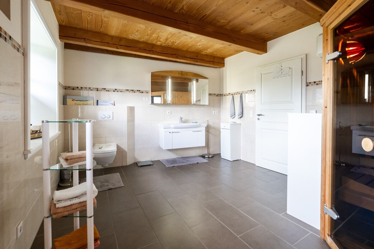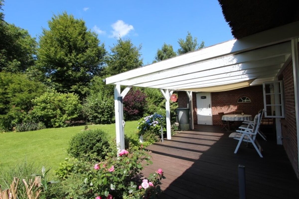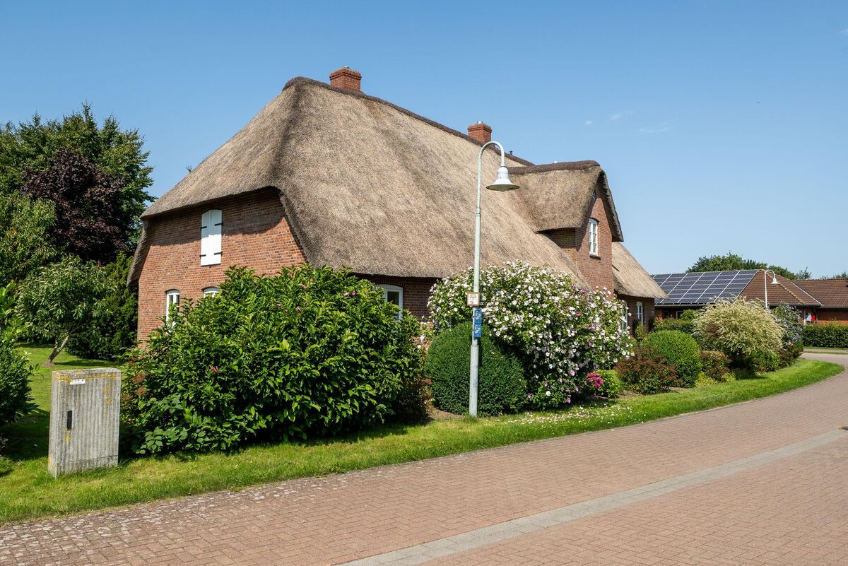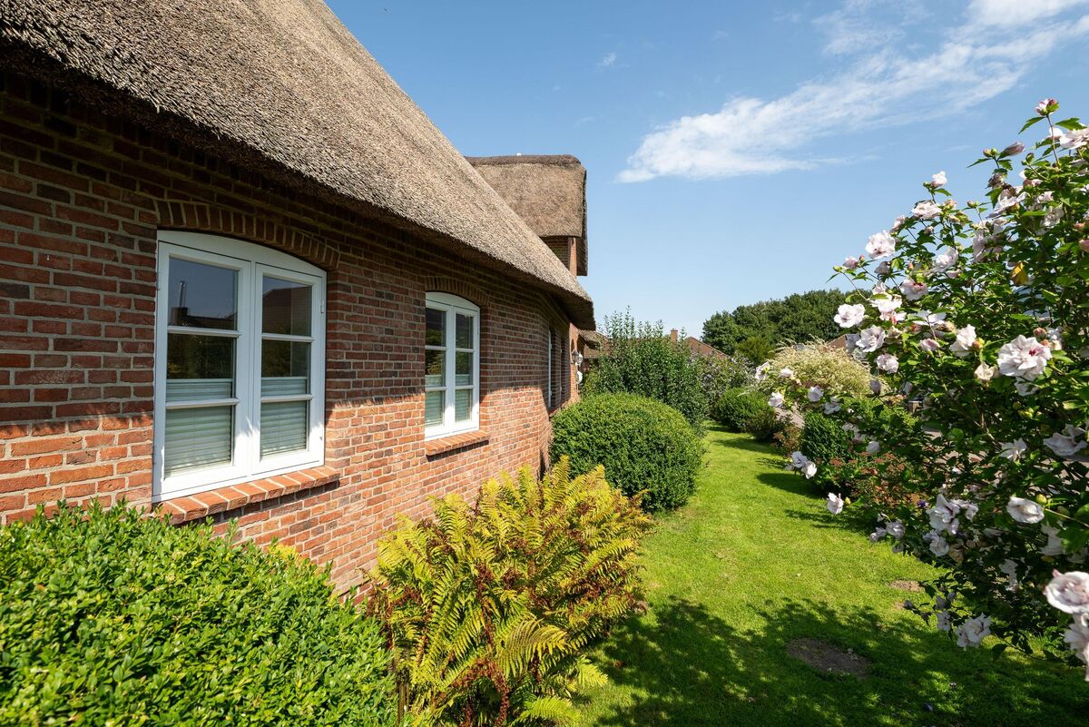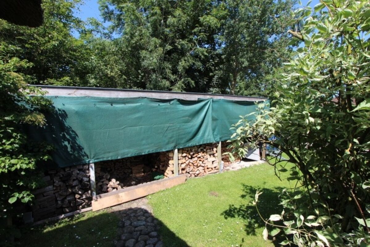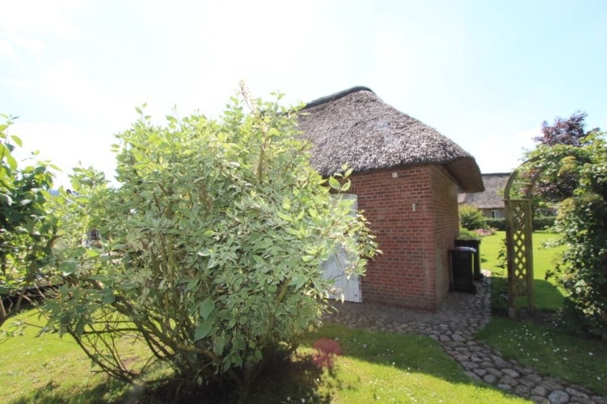 Die Garage wurde im Stil des Hauses ebenfalls in massiver Bauweise und mit Reeteindeckung errichtet. Das Reetdach ist soeben vollständig überarbeitet worden, sodass Ihnen dieses die nächsten Jahre viel Freude bereiten wird.