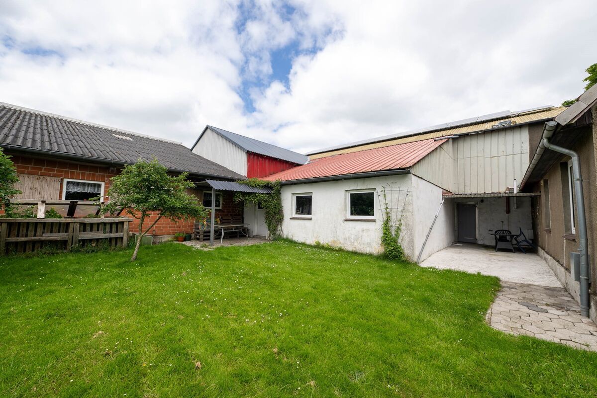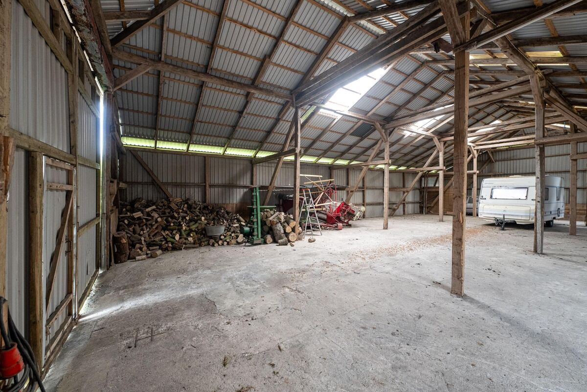 Das neuere Stallgebäude wurde zuletzt als Unterstellmöglichkeit für Fahrzeuge angeboten. Hier eignet sich die Fläche ideal um PKW, Wohnmobile oder Boote unterzubringen. Weiter bietet sich eine Tierhaltung durch die direkt angrenzenden Grünlandflächen ideal an.