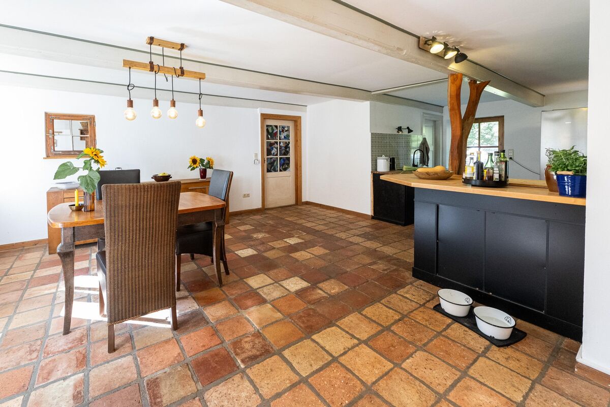- Fußböden: Echtholzdielung, z.T. ca. 400 Jahre alte Bodenfliesen