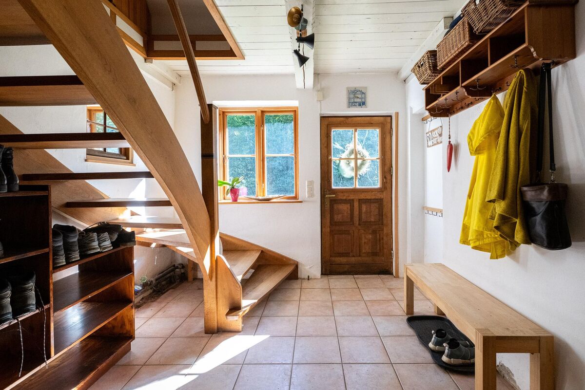 Im gesamten Haus gibt es liebevolle Details: Es sind zum Einen die stilgerechten Fußböden (Stein- und Holzdielung), wie auch die Raumgestaltung in Erd- und Obergeschoß. Im Erdgeschoß hat man einen herrlichen Blick in den großen Garten in Richtung Wald. Die beiden großen Räume im Obergeschoß verfügen jeweils über zusätzlich installierte Schlafbereiche.