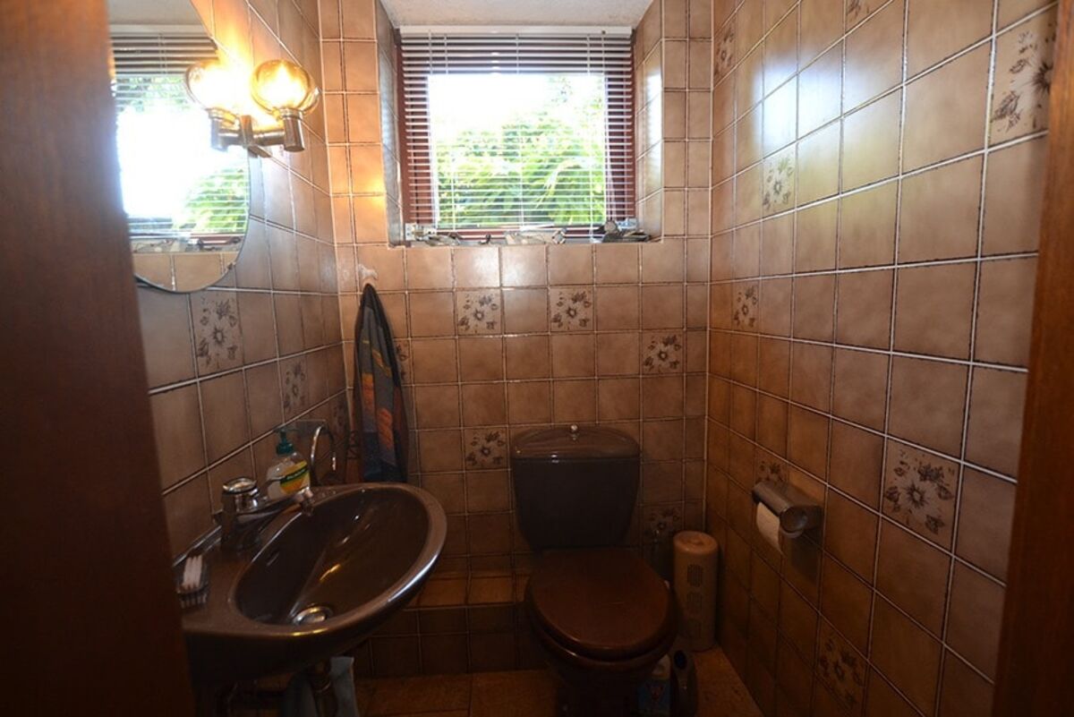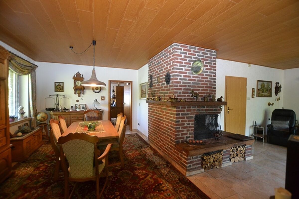 Im Erdgeschoss sind ein großzügiger Wohn-Esszimmerbereich, eine Küche mit Einbauküche, ein Gäste-WC sowie ein Arbeitszimmer und eine Diele vorhanden. Das Wohnzimmer ist mit einem zurzeit offenen Kamin ausgestattet.