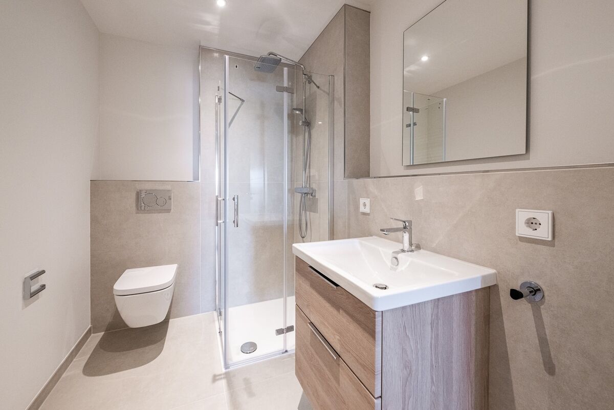 1 Gäste-Badezimmer mit Dusche und Waschmaschinenanschluss