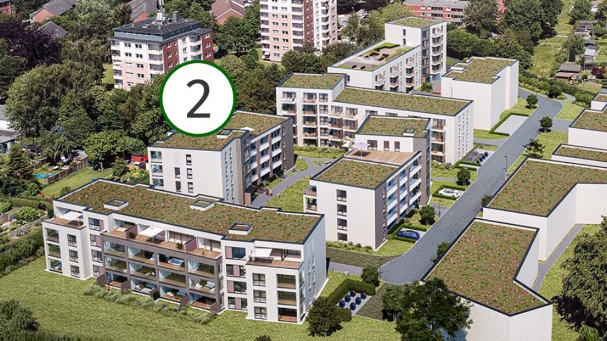 Die Gesamtwohnanlage aus dem Baujahr 2024 umfasst nach Fertigstellung insgesamt 3 Wohngebäude mit Tiefgarage sowie 87 modernen und hochwertig ausgestatteten Wohnungen in attraktiver Wohnlage in Flensburg-Sandberg.